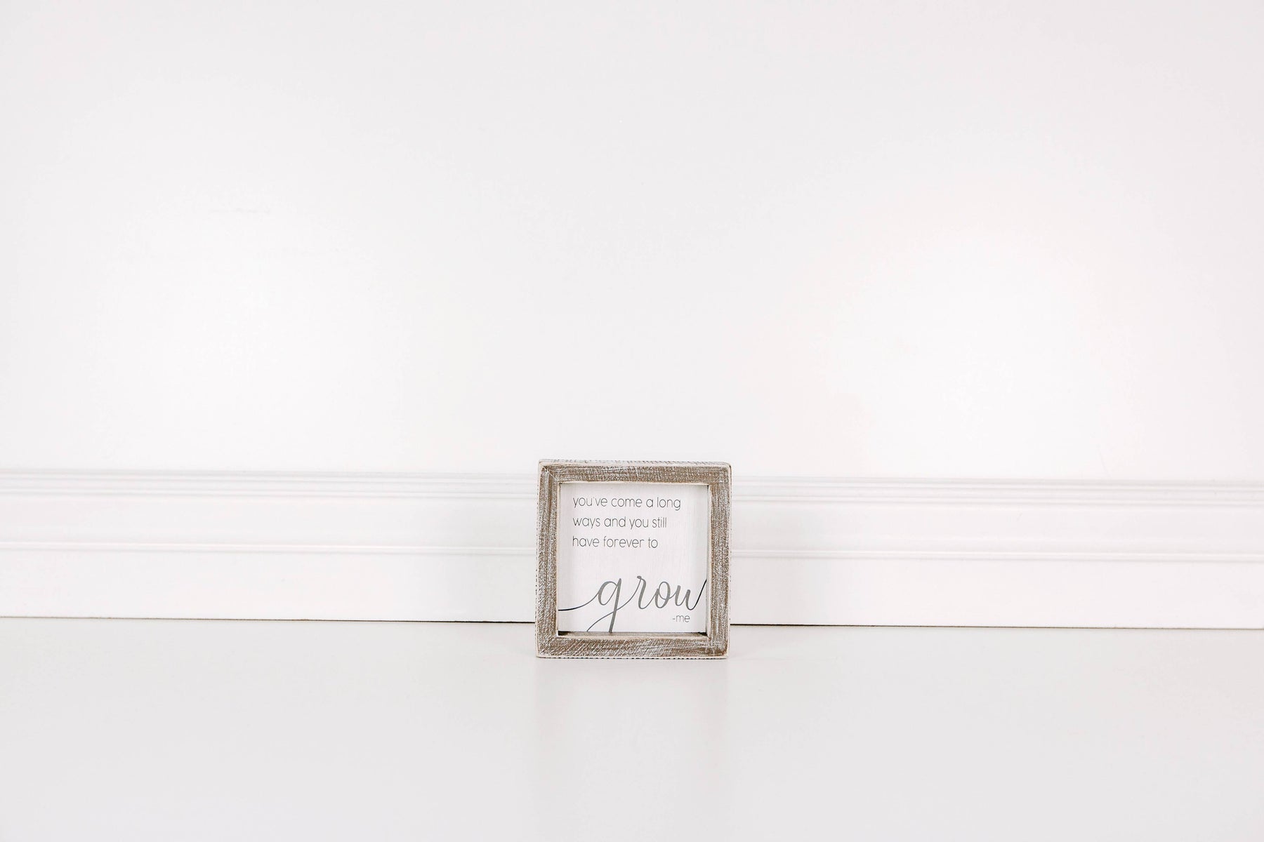 Motivate yourself by displaying "You've Come A Long Way And You Still Have Forever To Grow", this framed sign will help boost up your drive in carrying on. It measures 5" x 5" x 1.5" and will look great either hanging or freestanding. It uses gray and white colors which can blend well with any home or office design.