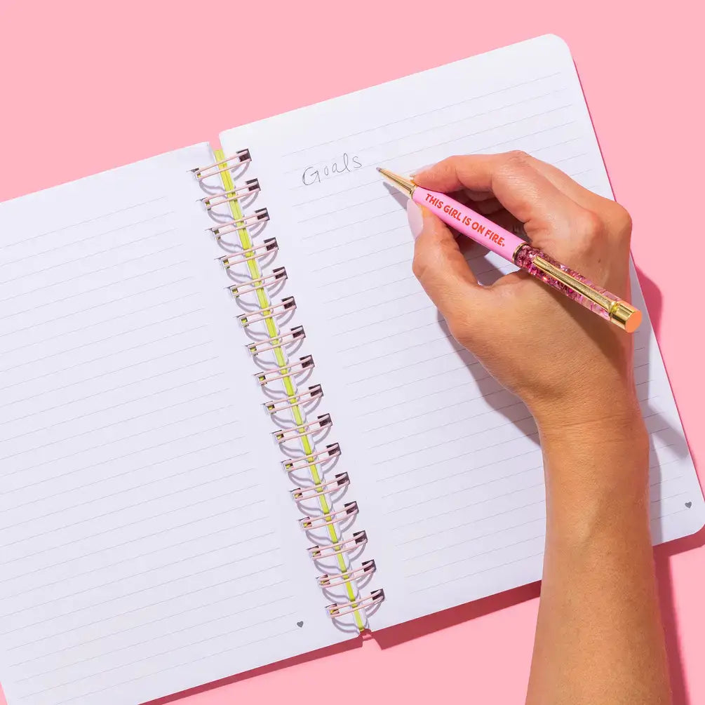 Make life a little more fun with our Confetti Pens! Filled with colorful confetti, adorned with gold metal accents and including the phrase "This Girl Is On Fire", they look as beautiful as they write. These pens are packaged to be sold individually. Put them in a jar by the register for quick add-ons to notepad purchases or tie them together with a notebook for a giftable bundle.